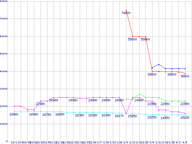 | ※製品名をクリックすると個別のグラフを表示します ※点線部は販売店が確認できなかった、または調査データがないことを示します | |