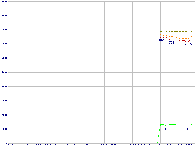 Athlon II X2 255 (3.1GHz,L2 1MB×2,TDP 65W)の価格推移↑前グラフ↓次グラフ(2009年1月30日〜2010年4月9日)※このグラフは過去のデータも税率5%相当に調整した税込み相当額のグラフです。●関連グラフCPU主要製品の最安値推移CPU主要製品(最安値1万円未満)の最安値推移AMD系CPUの最安値推移Socket AM3 (Dual Core)の最安値推移●凡例最安値(点線部は販売店未確認または未調査)平均値最高値ショップ数