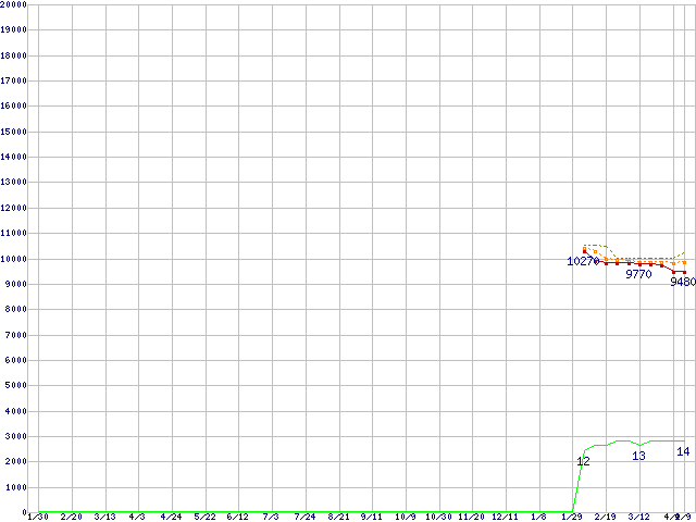 Phenom II X2 555 Black Edition (3.2GHz,L2 512KB×2,L3 6MB)の価格推移↑前グラフ↓次グラフ(2009年1月30日〜2010年4月9日)※このグラフは過去のデータも税率5%相当に調整した税込み相当額のグラフです。●関連グラフCPU主要製品の最安値推移CPU主要製品(最安値1万円未満)の最安値推移AMD系CPUの最安値推移Socket AM3 (HyperTransport 3.0,Dual Core,L3 6MB,TDP 80W)の最安値推移●凡例最安値(点線部は販売店未確認または未調査)平均値最高値ショップ数