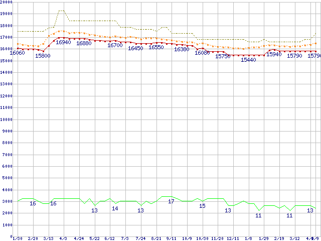 Core 2 Duo E8400 (3GHz,L2 6MB)の価格推移↑前グラフ↓次グラフ(2009年1月30日〜2010年4月9日)※このグラフは過去のデータも税率5%相当に調整した税込み相当額のグラフです。●関連グラフCPU主要製品の最安値推移CPU主要製品(最安値1万円〜2万円未満)の最安値推移Intel系CPUの最安値推移LGA775 (FSB 1333MHz,Dual Core,TDP 65W)の最安値推移●凡例最安値(点線部は販売店未確認または未調査)平均値最高値ショップ数