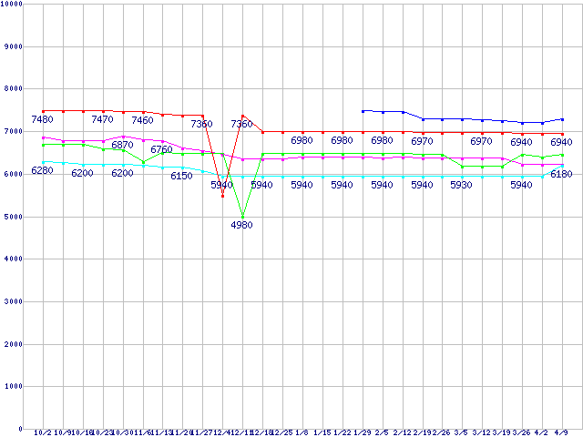 | ※製品名をクリックすると個別のグラフを表示します ※点線部は販売店が確認できなかった、または調査データがないことを示します | |