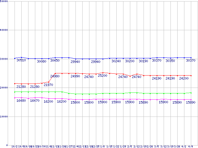 | ※製品名をクリックすると個別のグラフを表示します ※点線部は販売店が確認できなかった、または調査データがないことを示します | |