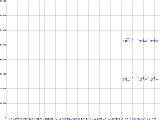 | LGA1366 (QPI 4.8GT/s,L3キャッシュ8MB,Quad Core,Hyper-Threading,TDP 130W)の最安値推移 |