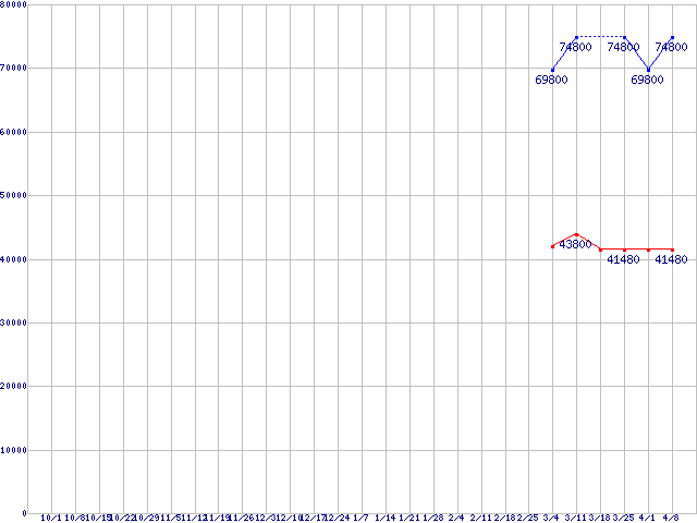 | ※製品名をクリックすると個別のグラフを表示します ※点線部は販売店が確認できなかった、または調査データがないことを示します |
