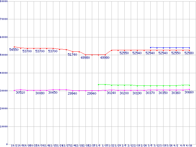 | CPU主要製品(最安値3万円〜6万円未満)の最安値推移 |
