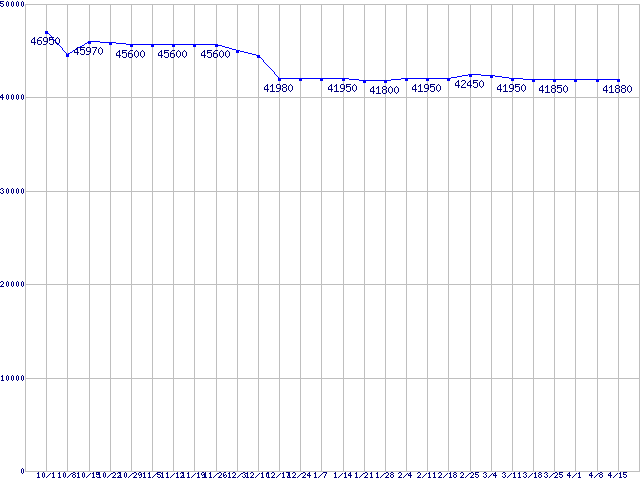 | HDD 160〜200GB未満の最安値推移 |