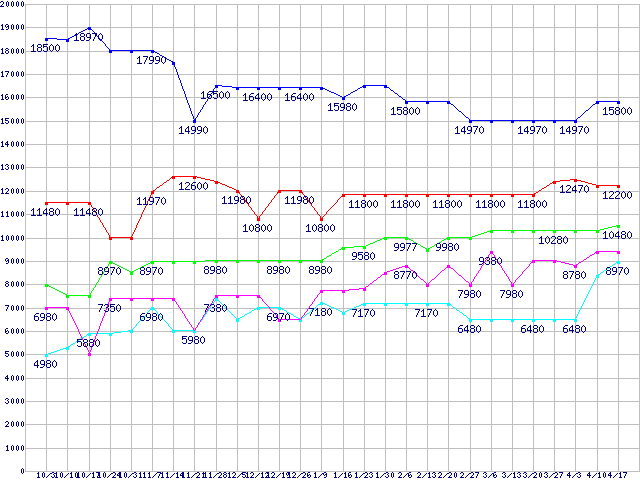 | ※製品名をクリックすると個別のグラフを表示します ※点線部は販売店が確認できなかった、または調査データがないことを示します | |