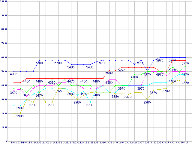 | ※製品名をクリックすると個別のグラフを表示します ※点線部は販売店が確認できなかった、または調査データがないことを示します | |