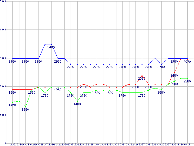 | ※製品名をクリックすると個別のグラフを表示します ※点線部は販売店が確認できなかった、または調査データがないことを示します | |