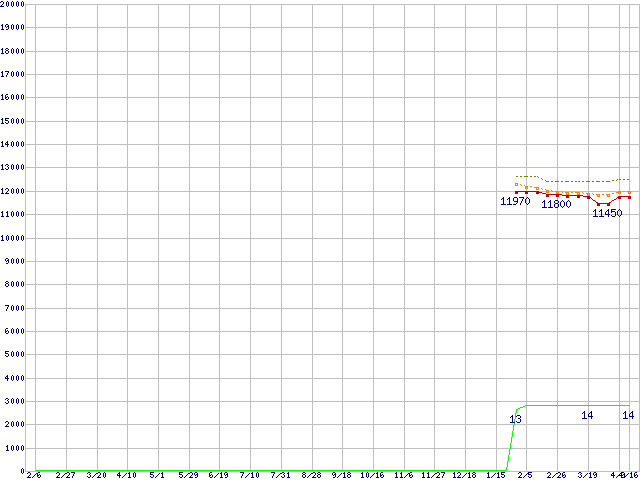Athlon II X4 635 (2.9GHz,L2 512KB×4,TDP 95W)の価格推移↑前グラフ↓次グラフ(2009年2月6日〜2010年4月16日)※このグラフは過去のデータも税率5%相当に調整した税込み相当額のグラフです。●関連グラフCPU主要製品の最安値推移CPU主要製品(最安値1万円〜2万円未満)の最安値推移AMD系CPUの最安値推移Socket AM3 (Quad Core)の最安値推移●凡例最安値(点線部は販売店未確認または未調査)平均値最高値ショップ数
