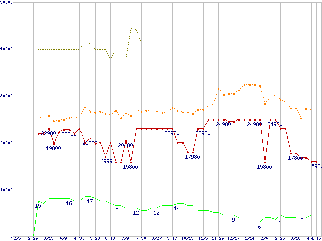 | 2.5インチ ローエンドSSD 128GB (128GB,MLC)の価格推移 |