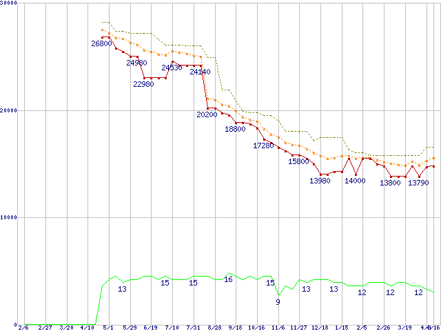 | Phenom II X4 955 Black Edition (3.2GHz,L2 512KB×4,L3 6MB,TDP 125W)の価格推移 |