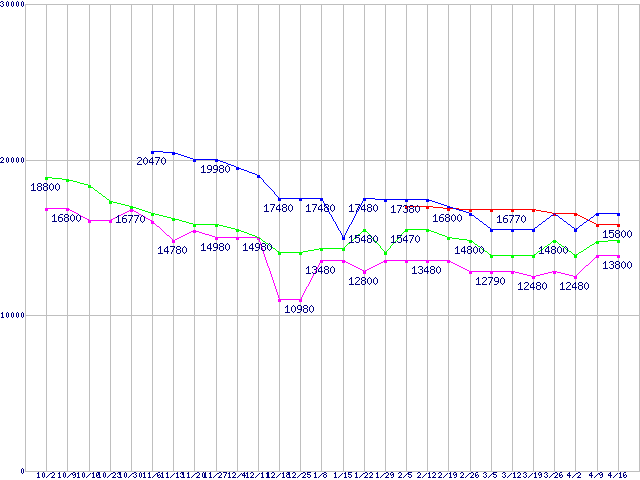 | Socket AM3 (HyperTransport 3.0,Quad Core Core)の最安値推移 |