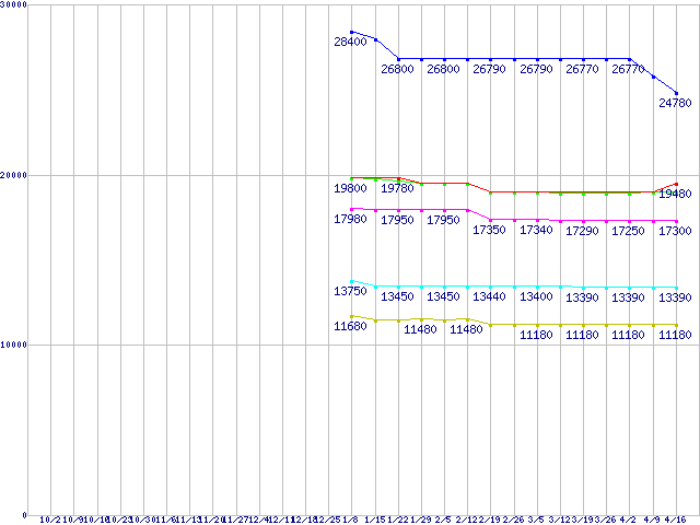 | ※製品名をクリックすると個別のグラフを表示します ※点線部は販売店が確認できなかった、または調査データがないことを示します | |