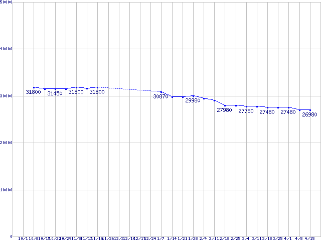 | WD Caviar Black (7200rpm,3Gb/s)の最安値推移 |
