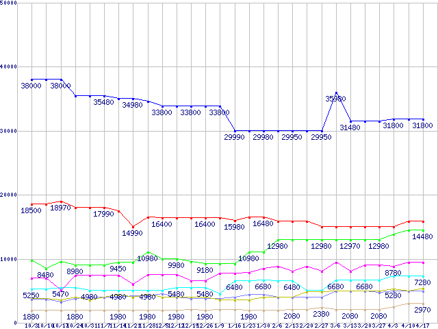 | ※製品名をクリックすると個別のグラフを表示します ※点線部は販売店が確認できなかった、または調査データがないことを示します | |