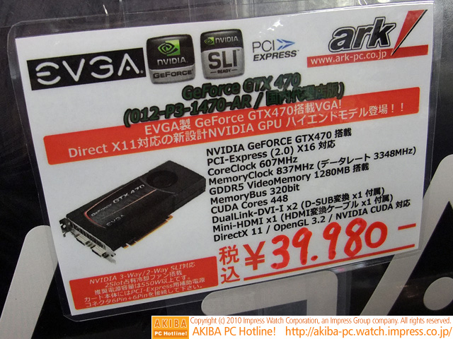 ![]() | AKIBA PC Hotline! 2010年4月17日号 今週見つけた新製品:ビデオカード EVGA GeForce GTX 480(015-P3-1480-AR) EVGA GeForce GTX 470(012-P3-1470-AR) |