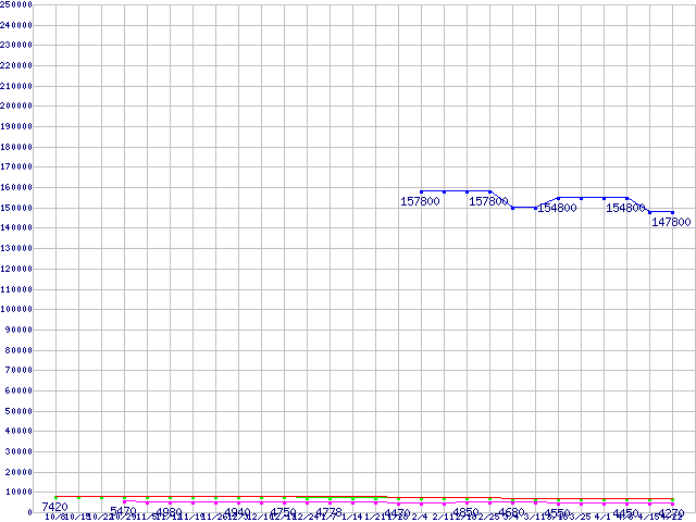 | HDD 500〜600GB未満の最安値推移 |