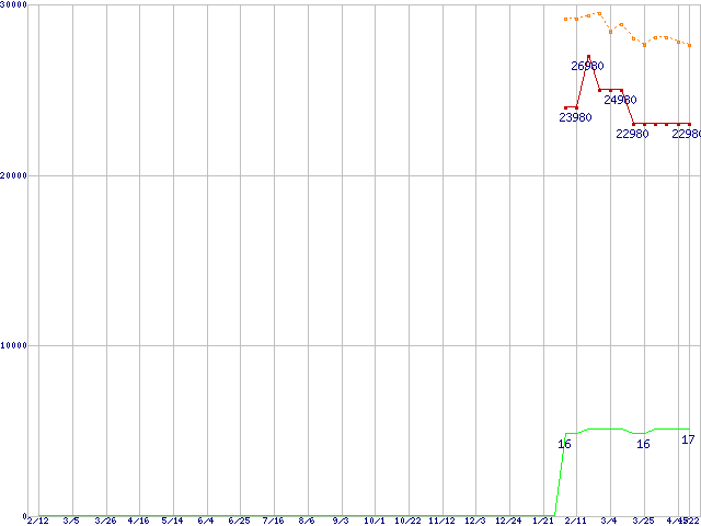 | 2.5インチ ミドルクラスSSD 128GB (128GB,MLC)の価格推移 |