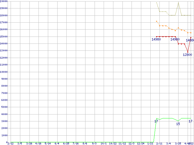 | 2.5インチ ミドルクラスSSD 64GB (64GB,MLC)の価格推移 |