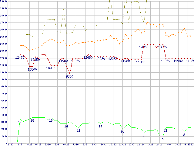 | 2.5インチ ローエンドSSD 64GB (64GB,MLC)の価格推移 |