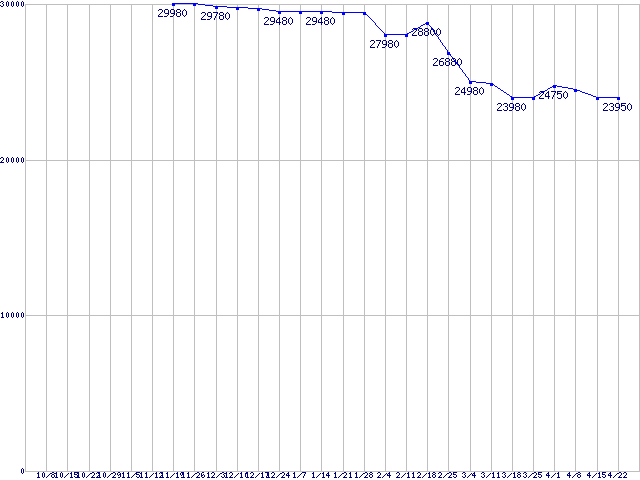 | Barracuda XT (7200rpm,6Gb/s)の最安値推移 |