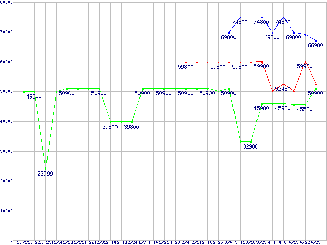 | ※製品名をクリックすると個別のグラフを表示します ※点線部は販売店が確認できなかった、または調査データがないことを示します | |