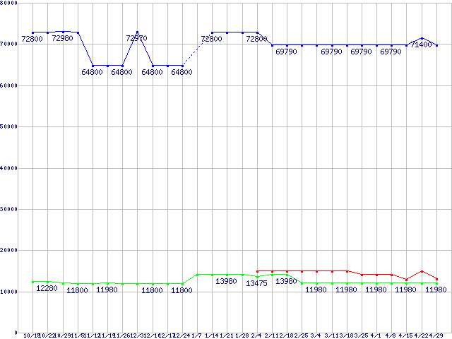 | HDD/SSD 60GB〜80GB未満の最安値推移 |