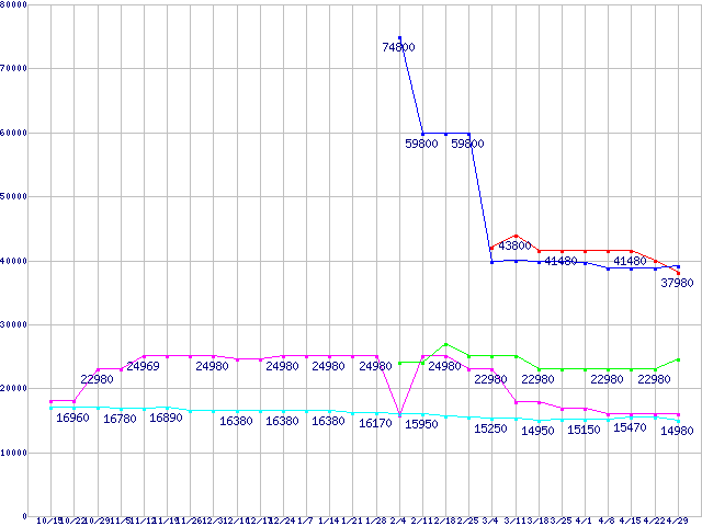 | ※製品名をクリックすると個別のグラフを表示します ※点線部は販売店が確認できなかった、または調査データがないことを示します | |