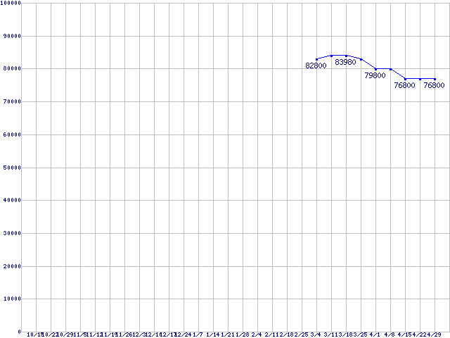 | HDD 200〜250GB未満の最安値推移 |