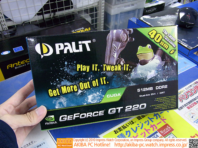 AKIBA PC Hotline! 2010年5月1日号今週見つけた新製品:ビデオカード Palit Microsystems GeForce GT 220(512MB DDR2)(NE2T2200F0851)前の画像←[記事に戻る]