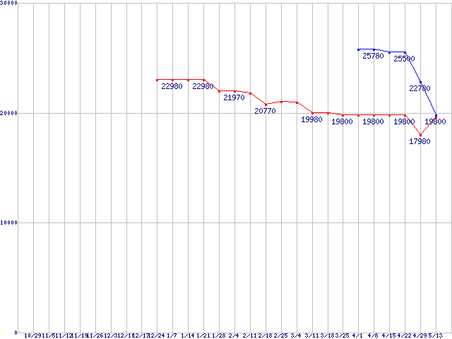 | ※製品名をクリックすると個別のグラフを表示します ※点線部は販売店が確認できなかった、または調査データがないことを示します |