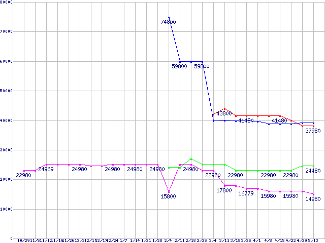 | HDD 100〜160GB未満の最安値推移 |