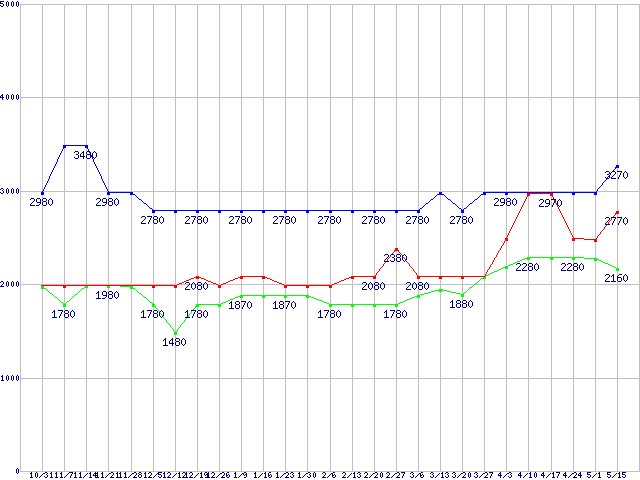| ※製品名をクリックすると個別のグラフを表示します ※点線部は販売店が確認できなかった、または調査データがないことを示します | |