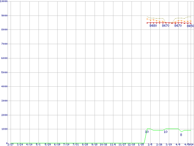 Athlon II X3 440 (3.0GHz,L2 512KB×3,TDP 95W)の価格推移↑前グラフ↓次グラフ(2009年2月27日〜2010年5月14日)※このグラフは過去のデータも税率5%相当に調整した税込み相当額のグラフです。●関連グラフCPU主要製品の最安値推移CPU主要製品(最安値1万円未満)の最安値推移AMD系CPUの最安値推移Socket AM3 (Triple Core)の最安値推移●凡例最安値(点線部は販売店未確認または未調査)平均値最高値ショップ数
