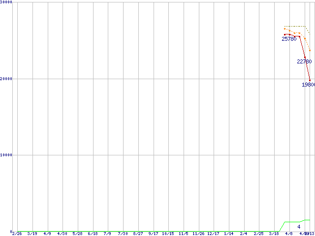 | 2.5インチSSD(SandForce製コントローラ) 50GB (50GB,MLC)の価格推移 |