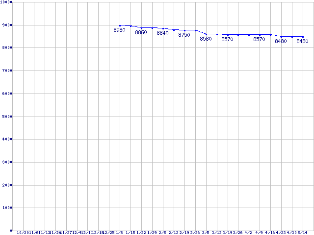 | LGA1156 (L3キャッシュ3MB,Dual Core,GPU内蔵,TDP 73W)の最安値推移 |