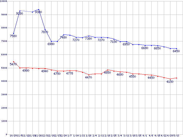 | Deskstar 7K1000.C (7200rpm,3Gb/s)の最安値推移 |