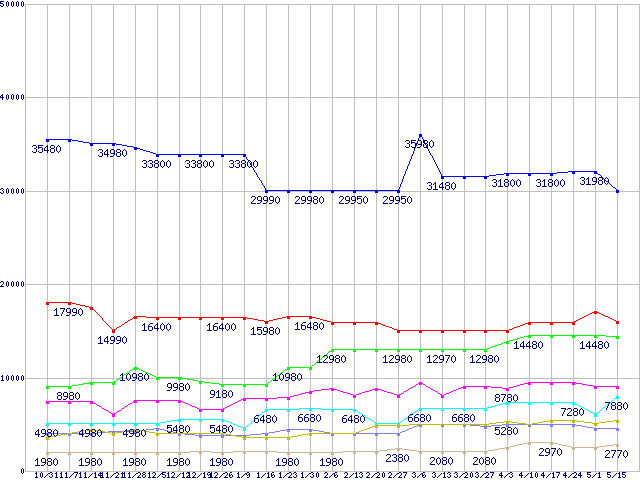| ※製品名をクリックすると個別のグラフを表示します ※点線部は販売店が確認できなかった、または調査データがないことを示します | |