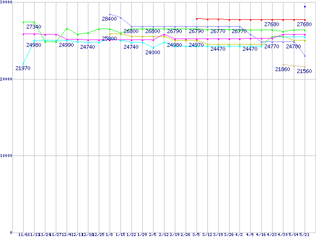 | CPU主要製品(最安値2万円〜3万円未満)の最安値推移 |