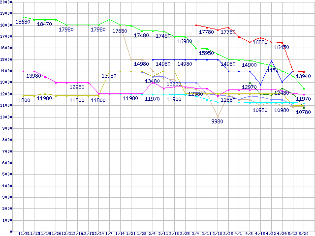 | ※製品名をクリックすると個別のグラフを表示します ※点線部は販売店が確認できなかった、または調査データがないことを示します | |