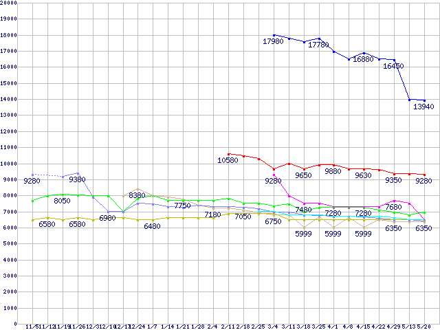 | ※製品名をクリックすると個別のグラフを表示します ※点線部は販売店が確認できなかった、または調査データがないことを示します | |