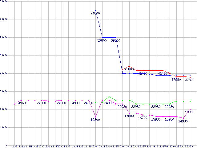 | HDD 100〜160GB未満の最安値推移 |