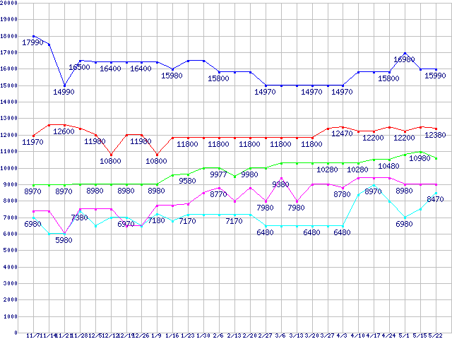 | ※製品名をクリックすると個別のグラフを表示します ※点線部は販売店が確認できなかった、または調査データがないことを示します | |