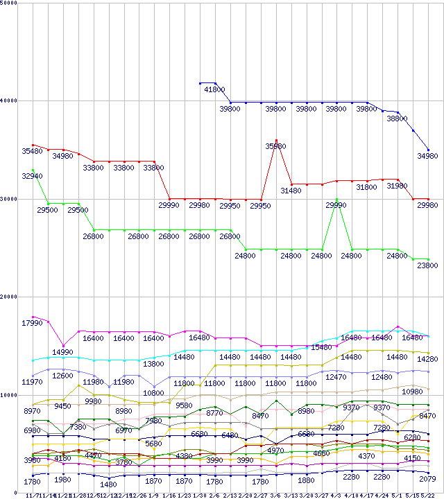 メモリ主要製品の最安値推移