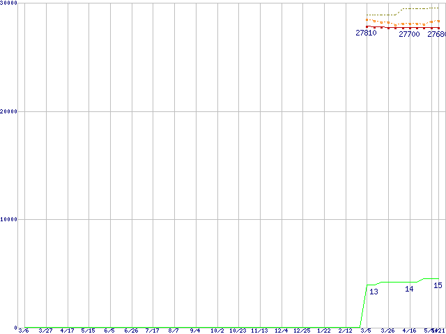 Core i7-930 (2.80GHz)の価格推移↑前グラフ↓次グラフ(2009年3月6日〜2010年5月21日)※このグラフは過去のデータも税率5%相当に調整した税込み相当額のグラフです。●関連グラフCPU主要製品の最安値推移CPU主要製品(最安値2万円〜3万円未満)の最安値推移Intel系CPUの最安値推移LGA1366 (QPI 4.8GT/s,L3キャッシュ8MB,Quad Core,Hyper-Threading,TDP 130W)の最安値推移●凡例最安値(点線部は販売店未確認または未調査)平均値最高値ショップ数