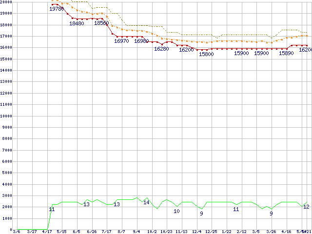 Core 2 Quad Q8400 (2.66GHz,L2 2MB×2)の価格推移↑前グラフ↓次グラフ(2009年3月6日〜2010年5月21日)※このグラフは過去のデータも税率5%相当に調整した税込み相当額のグラフです。●関連グラフCPU主要製品の最安値推移CPU主要製品(最安値1万円〜2万円未満)の最安値推移Intel系CPUの最安値推移LGA775 (FSB 1333MHz,Quad Core,TDP 95W)の最安値推移●凡例最安値(点線部は販売店未確認または未調査)平均値最高値ショップ数
