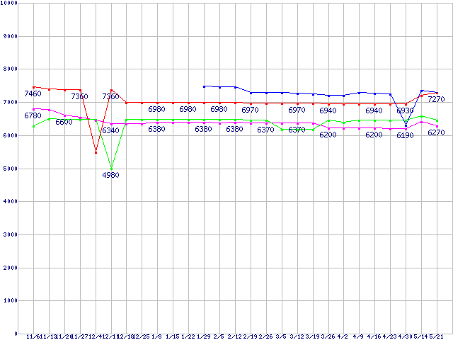 | ※製品名をクリックすると個別のグラフを表示します ※点線部は販売店が確認できなかった、または調査データがないことを示します | |