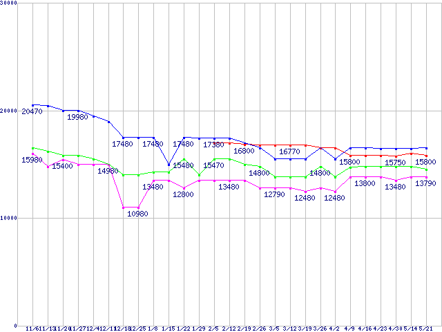 | Socket AM3 (HyperTransport 3.0,Quad Core)の最安値推移 |