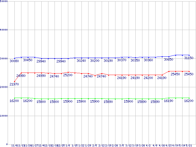 | ※製品名をクリックすると個別のグラフを表示します ※点線部は販売店が確認できなかった、または調査データがないことを示します | |